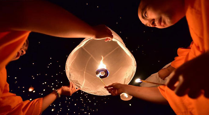 Kongming lanterns lighted up to celebrate New Year of Dai people