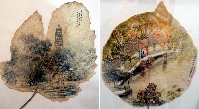 Artist creates Suzhou gardens on leaves
