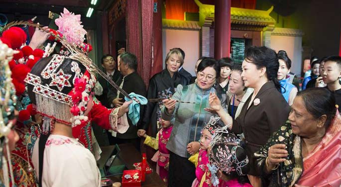 Peng Liyuan hosts museum tour for foreign leaders' wives
