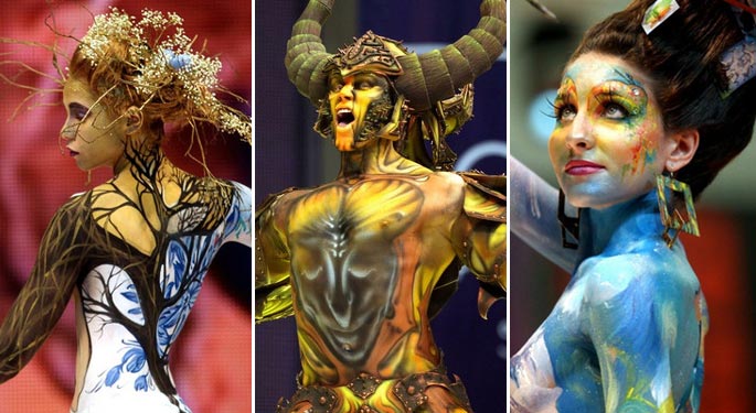 Models pose during the International Beauty Expo Body Art Competition in Saint Petersburg, Russia on February 22, 2014.