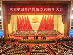 • 慶祝中國共產黨成立90周年大會7月1日上午在北京人民大會堂隆重舉行。中共中央總書記胡錦濤在會上發表重要講話。謝環馳 攝