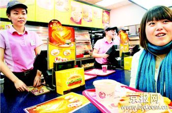 中國日報網環球在線消息:繼賣湯、賣米飯、賣粥之后,肯德基餐廳從21日開始在早餐時段出售油條。在肯德基前門店,差不多有一半顧客都買了油條“嘗鮮”。不少顧客認為,一根油條3塊錢,有點貴了。 肯德基銷售的油條比普通意義上的油條差不多短一半。早餐時段還供應皮蛋瘦肉粥、香菇雞肉粥、牛肉蛋花粥,顧客可以隨意選擇與油條搭配。肯德基產品研發負責人介紹,經過一年多的研發測試推出的這種不添加明礬的“安心油條”將長期保留。(來源:北京晚報 閻彤 攝 記者 楊濱) |
