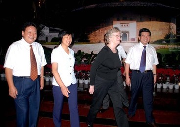 2007年8月30日,聯合國“世遺”專家荻麗玲(右二)教授,在市、縣領導的陪同下到永定考察。(攝影 劉永良)