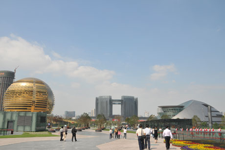 中國日報網環球在線消息:杭州錢江新城核心區于9月30日正式開城,喜迎建國59周年。這是杭州市保老城建新城,實施城市東擴、旅游西進、沿江開發、跨江發展戰略結出的重要成果,杭州城市發展由此從“西湖時代”邁向“錢塘江時代”。