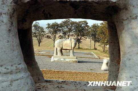 2008年6月以來,陜西省考古研究院組成的唐橋陵考古調(diào)查隊,對橋陵陵園進行考古調(diào)查,并對南門遺址進行了部分考古發(fā)掘,不僅發(fā)現(xiàn)了十余米長的王賓殿和二十多米長三個過洞五間寬的南門基址,還首次發(fā)現(xiàn)了代表最高禮制的以石頭為基礎(chǔ)的三出闕。唐睿宗橋陵是唐朝第五代皇帝李旦(唐高宗李治與武則天的兒子,唐玄宗李隆基的父親)的陵墓,位于陜西省蒲城縣城西北約13公里處的豐山。(新華社記者 馮國 攝)