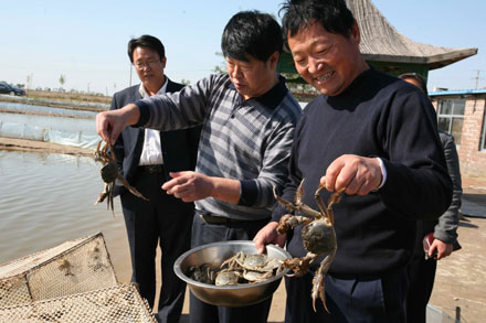 中國日報網環球在線消息:山東省東營市已發展成為黃河流域最大的大閘蟹養殖基地,養殖面積超過50萬畝,年創產值3.8億元,成為當地農民致富的有效途徑。這個城市目前擁有濕地生態養殖面積達35萬畝,年產商品大閘蟹10000余噸。