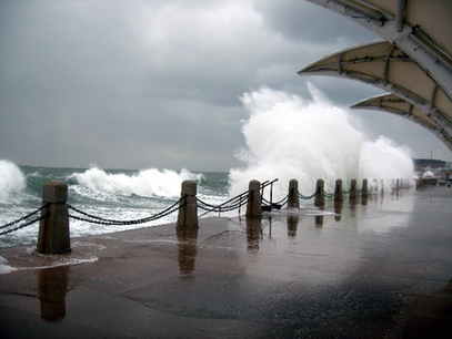 大風使煙臺海濱掀起十幾米大浪
