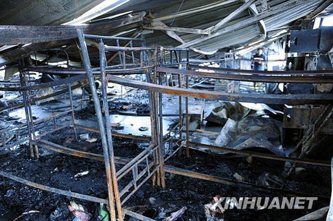 12月4日,火災現場被燒成空架的高低床。新華社記者李紫恒攝