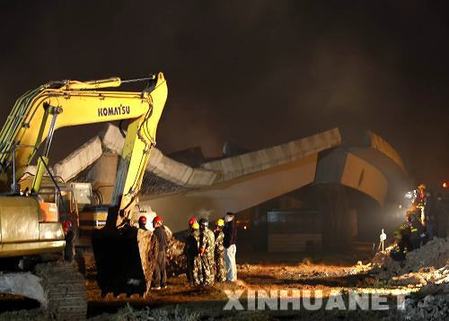 12月10日凌晨,工作人員在事故現(xiàn)場(chǎng)進(jìn)行救援。12月9日19時(shí)30分許,昆明市通往滇西北的主要交通要道之一的小莊立交橋部分閘道施工路段突然發(fā)生垮塌事故。經(jīng)初步調(diào)查,事故造成2人死亡、4人受傷,受傷人員已送醫(yī)院救治。據(jù)目擊者介紹,這是一座正在拆除的立交橋,垮塌橋面約200米,有3孔橋眼。橋體垮塌時(shí)正有一臺(tái)挖掘機(jī)在施工,橋上也有民工在施工,只聽(tīng)到“轟”的一聲,就看到橋下一輛微型車被倒下的橋體壓扁。(新華社記者楊牧源 攝)