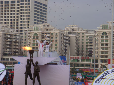 為紀念馬拉松運動起源2500年,比賽開始前,廈門馬拉松舉行圣火點燃儀式