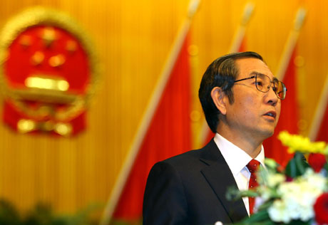 | 廣西壯族自治區主席馬飚在會上作政府工作報告。(火炎 攝) |