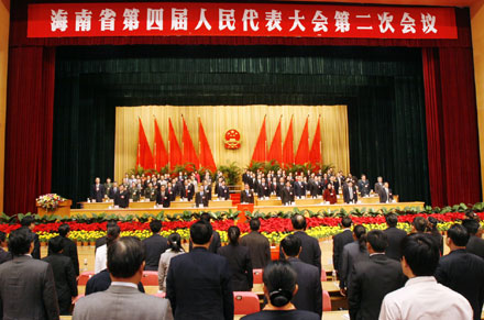 | 16日,歷時4天半的海南省第四屆人民代表大會第二次會議圓滿完成各項議程,于省人大會堂勝利閉幕。 (黃一鳴 攝) |