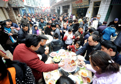 重慶:五寶年豬鬧新春 兩千人吃百家宴
