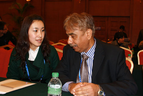 | 巴基斯坦聯合通訊社的記者馬蘇德(右)興致勃勃地參加了云南省第十一屆人民代表大會第二次會議 |