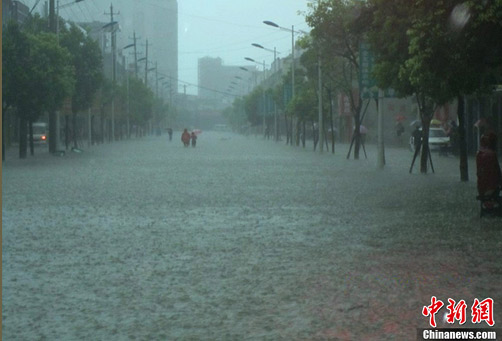 江蘇響水突降暴雨 積水過膝仍在持續(xù)
