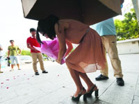 記者聞訊很快趕到現(xiàn)場,路邊賣西瓜的攤主說,事故發(fā)生在11點過一點,當(dāng)時一輛攪拌車和一名騎自行車的年輕女子從新竹路的兩頭對向行駛,走到新竹廣場時,雙雙選擇了拐彎。