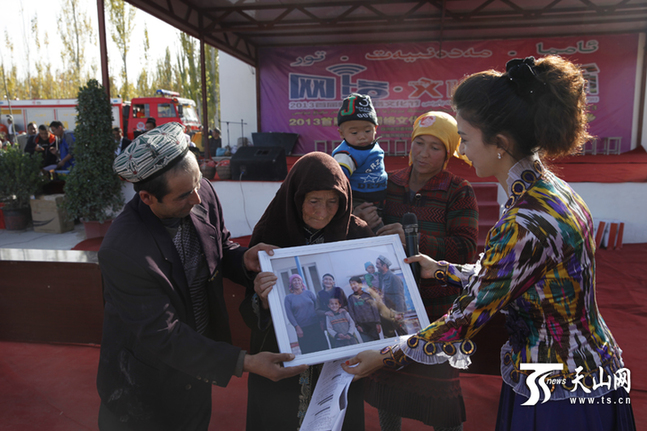 收到“神秘禮物”的分別是吐尼沙·歐麥爾、吐爾森·艾買提、吾布力卡熱·庫來西、塔吉汗·牙塔克等4戶家庭。11月3日,在此次活動舉辦前夕,工作人員在走訪過程中了解到當地村民很少有機會拍“全家福”,為了給村民們不僅帶來歡樂,還準備帶來驚喜,于是就為他們拍照留念并將照片制作成相冊,于當日活動現場贈送給村民。