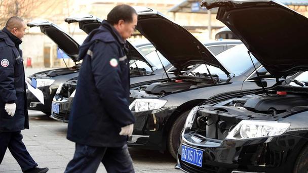 2017年2月12日,北京,北汽集團為全國兩會服務的車輛,開始在亞運村機動車檢測場等修理廠進行逐車檢測。