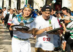 東南汽車廉小強董事長(右)和左自生總經理(左)在東南V6旁