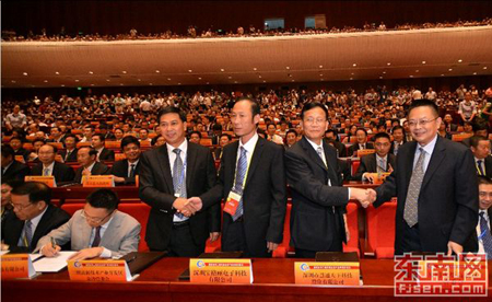 王欽敏說,全國工商聯一直十分關注和支持福建的經濟社會發展,積極參與海峽西岸經濟區的建設發展。當前,全球經濟正進入一個深度轉型調整時期,資源配置加速優化,產業結構加速調整,科技創新加速發展,新一輪世界技術革命和產業革命正在悄然興起。他希望閩商憑借雄厚的資金、先進的技術、廣泛的海內外聯系和遍布世界的商業網絡,充分利用這一難得的歷史和戰略機遇,繼續以強國富民為己任,繼承優良傳統,弘揚閩商精神,在實現中華民族偉大復興的中國夢中展示新形象、體現新作為,作出新貢獻。希望廣大閩商爭當中國夢的實踐者、社會和諧的促進者和兩岸交流合作的推動者。