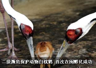 二級瀕危保護(hù)動物白枕鶴 首次在閩孵化成功(圖)