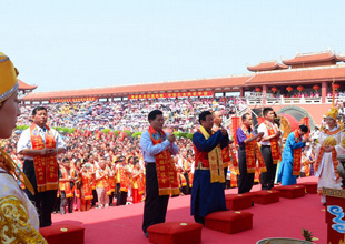 12日上午10時許,第六屆海峽論壇·媽祖文化活動周開幕式在湄洲媽祖祖廟天后廣場舉行。在媽祖祭祀大典上,包括臺灣島內400多家媽祖宮廟代表在內的13000名兩岸信眾齊拜媽祖,共祈兩岸福祉,盛典現場氣勢恢宏。