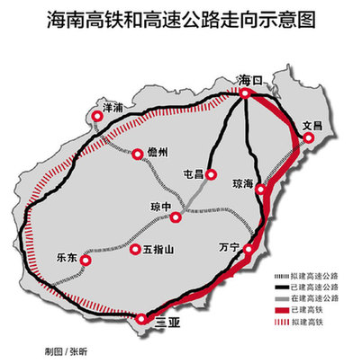 海南高鐵和高速公路走向示意圖