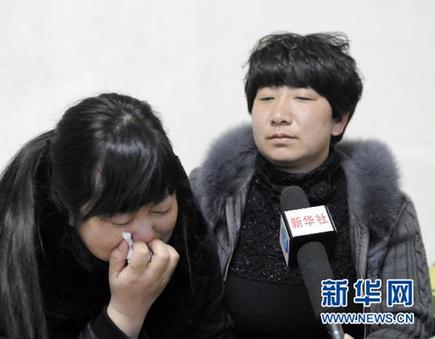 事故受害者臧連瑾的母親(左)接受采訪時難抑喪子之痛(4月7日攝)。 新華社記者 林宏 攝