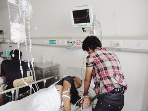 昨日,在吉大二院普通外科住院部3樓的病房內,記者見到了等待“救命血”的李純閣。李純閣側躺在病床上,一旁的愛人紅著眼圈。據李純閣的妹夫介紹,7月23日20時,李純閣駕駛一輛銀灰色捷達車從其妹夫家出來,要去合隆鎮的父親家。當日21時,其妹夫突然接到了電話,電話中,李純閣聲音比較微弱,說自己出了車禍。趕到現場后,其妹夫趕快撥打了120急救電話。“我到現場看了,出租車是由北向南開,他是由南向北開,責任應該在我們。”李純閣的妹夫說。