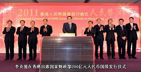 李克強在香港出席國家財政部200億元人民幣國債發行儀式 |