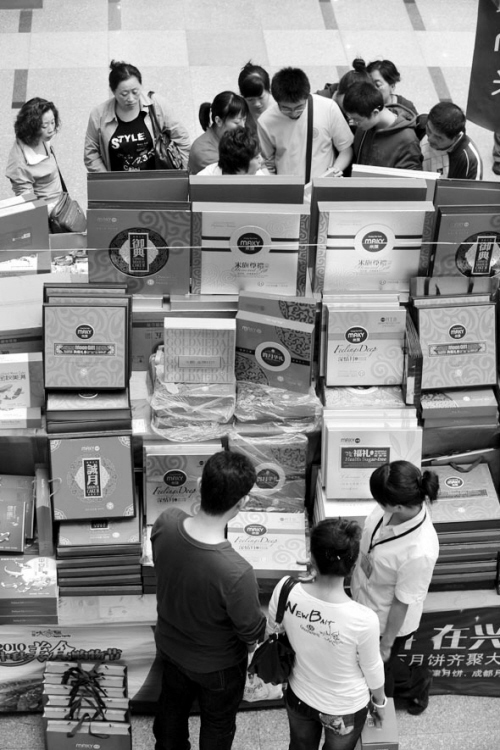 記者注意到,幾乎所有的月餅生產廠家都將成垛的月餅禮盒,擺在醒目的位置進行促銷。100元至300元之間的月餅禮盒成為不少企業的主打品種。一位銷售人員介紹,今年月餅禮盒的價格大多在300元以下,200元左右中低價位禮盒銷售最好。