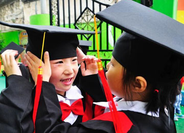 黃山一幼兒園小朋友穿學(xué)士服拍畢業(yè)照