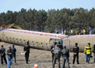大貨車側翻將小車壓扁至40厘米(組圖)