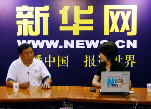 資料圖片:2008年6月16日,四川省綿陽市安縣桑棗鎮桑棗中學校長葉志平做客新華網