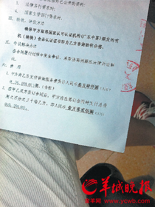 記者暗訪認證中介時偷拍的“成功案例”合同,標明“確保取得”認證