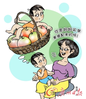 @天才LUCK咩:超市里買了一籃蘋果,沒發現里面搭賣了一個娃。