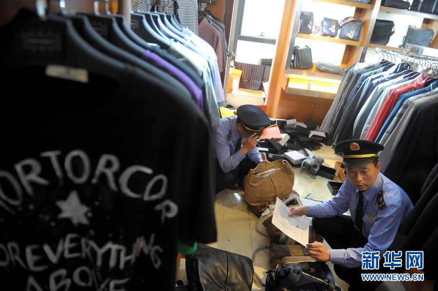 2013年5月13日,海淀工商和海淀警方聯手查獲了一個銷售假冒名牌窩點,當場查獲大量假冒的愛馬仕(Hermès)、古馳(GUCCI)、杰尼亞(Ermenegildo Zegna)等品牌的 箱包、衣服、手表、皮帶等,共有1000余件,價值1300余萬元。圖片來源:cfp