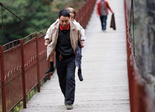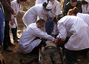 老人滑倒后,吳鈺一直和老人說話(上圖),并和急救人員一起將老人送往醫院(下圖)。圖由劉志曉提供