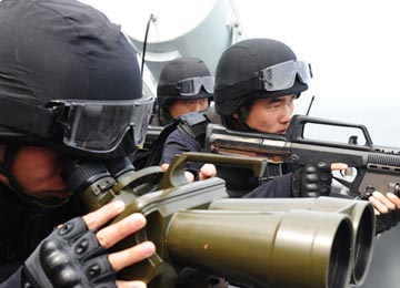 夏米力·夏克爾(中間)和他的戰友們演唱歌曲《咱們的民族連》