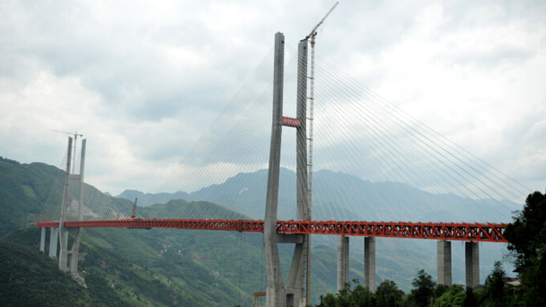 9月10日下午3時,隨著最后一塊橋面板平穩地吊裝成功,位于云貴交界處的世界第一高橋——尼珠河大橋(又名北盤江大橋)全面合龍,成為當之無愧的世界第一高橋。這一杭瑞高速公路上連接云貴兩省的控制性節點工程預計年底全面建成通車,屆時,宣威至貴州的車程將從4小時縮短至1小時之內。