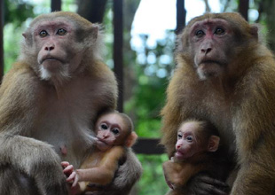 云南:獼猴媽媽“姐妹情深”