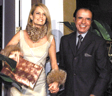 Former Argentine President Carlos Menem, who has a penchant for private jets, fast cars and a headline-grabbing family life, is getting married again. It's a match made in media heaven. The flamboyant 70-year-old leader of the opposition Peronist party will marry a Chilean woman half his age, a beauty queen turned television hostess who sparked a controversy this month when she posed for a magazine cover with an Argentine flag draped around her scantily clad body. Menem, who governed from 1989 to 1999, will marry Cecilia Bolocco, 36, at a ceremony on Saturday in northwestern La Rioja province, his spokesman told Reuters. "There will be a civil ceremony," he said. Most arrangements for the wedding have been kept secret. The marriage comes just two months before Menem is due to testify in court over allegations he authorized illegal arms deals to Ecuador and Croatia as president, a charge he denies. The Peronist leader's family was frequently in the news during his presidency. His ex-wife, Zulema, was thrown out of the presidential palace in 1990 before television cameras during the couple's noisy separation. Zulema later accused Menem of a cover-up surrounding the death of their son, Carlitos, who was killed when he crashed his helicopter in 1995. She is also due to give evidence this week in the illegal arms case against Menem.