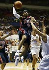 Only the top three teams from the tournament advance to next year's Athens Olympics. In another upset on Wednesday, world championship silver medallists Argentina slumped to a surprise 97-92 defeat by Venezuela. The United States (6-0), who overcame a slow start to beat Mexico 96-69, and Canada (4-2), who sneaked past the Dominican Republic 78-75 with two late Steve Nash free throws, have qualified for the semi-finals. Despite Wednesday's defeat, Argentina (3-3) have also qualified for the semi-finals and now play the Dominican Republic (1-5) in their final second round match on Thursday. Brazil play Mexico (2-4), the US meet Puerto Rico (4-2) and Canada will play Venezuela (2-4) on Thursday. Brazil, who finished eighth at last year's world championships in Indianapolis, were eliminated from medal contention when the hosts rallied for their two-point victory. Puerto Rico trailed by as much as eight points in the third quarter, but Eddie Casiano's layup with 19 seconds left snapped a 70-70 tie. Brazil's Anderson Varejao then missed a three-pointer right at the buzzer. Elias Ayuso scored 19 points for the Puerto Ricans. Venezuela's Oscar Torres had a huge game for his side, scoring 20 points to lead them past the Argentines. Victor Diaz chipped in with 15 points while Miguel Marriaga added 14. Argentina, whose balanced offense had pushed the US on Tuesday, were led by Andres Nocini's 17 points while Ruben Wolkowisky added 16. US VICTORY After a slow start, the United States cruised to victory over Mexico to remain undefeated at the tournament. Tim Duncan's 16 points and six rebounds led the US, while Allen Iverson chipped in 13. "We've got to come out the same way we do in the second half," Iverson told reporters in reference to their early game problems. "We have to play with some sense of urgency. That's something we need to be concerned about." Mexico actually led 26-19 after the first quarter but the US tied it up 30-30 with five minutes left in the half on a dunk by Duncan, who reeled off 12 straight points, to help his side to a 49-40 lead at halftime. The US then took a 20-point lead with six minutes remaining in the third quarter and never looked back. "When you play quality teams, you've go to jump on them early," head coach Larry Brown said. "We've had a difficult time doing that." In a near upset, Canada edged the Dominican Republic with a narrow 78-75 victory. Denham Brown led Canada with 16 points and six rebounds, though it was two late free throws by Nash that sealed the win. "It was very tiring, but considering the circumstances it was a great win for us," said Nash of the fact his side had played five games in five days. Jose Vargas led Dominican Republic with 17 points and 10 rebounds.