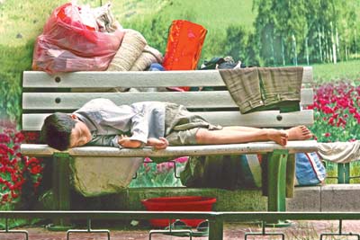 Free food, housing and transportation costs are a small part of the overall cost of these shelters. Those with serious illness who need long-term hospital treatment pose a major burden on both the shelters and the new regulations, according to Cao Tian. "As you know there are many poor people who have suffered illness but cannot afford the fee for treatment. If they ask for help to find the shelter, how can I deal with them?" Cao said. "On the one hand, lots of people who are qualified for the free help refuse to come to our shelter. On the other, we have to care for some others outside the free-aid list," he admitted. Beijing's four shelters are located in Chaoyang, Haidian, Fengtai and Shijingshan districts. Vagrants in the downtown districts of Xicheng, Dongcheng, Chongwen and Xuanwu will be also sent to one of the four shelters. The shelters aim to help homeless people who cannot afford food or housing, are without relatives to help them, and who do not qualify for allowances available for urban or rural residents, according to the regulations released by the State Council. Homeless people will be able to stay at the shelters for no more than 10 days, according to the new rules. Those who have made a career of begging and show no inclination of taking up regular employment will not be helped. The Measures on Aid and Management for Urban Vagrants and Beggars was approved by the State Council in mid-July. It aims to provide temporary shelter for the homeless in a bid to maintain social order in cities. It was previously common practice in many big cities to collect street tramps - defined as those "who are without legal papers, nor a normal dwelling place, nor a normal means of support," and place them in temporary confinement before deporting them to their place of origin. New home This is the third year that Wang Shiying, 74, has loitered around the streets of Beijing, trying to find her husband. The hungry Wang felt faint in the street and was sent to the shelter in northeast Chaoyang District. The shelter and staff there can offer Wang free food and housing for 10 days or longer. But they cannot help her find her husband, who has been dead for almost three years. The death of her husband left Wang mentally deranged. She still believes he is alive somewhere. When staff of the Chaoyang shelter for homeless people encountered Wang in Beijing, she was still decently dressed, with gold rings in her ears. She just remembers the purpose of her trip to Beijing and the name of her hometown in Central China's Hubei Province. "We have contacted the local government of her hometown according to the information Wang gave us," said Cao Tian, director of the Changyang shelter. "The local official confirmed Wang is from Hubei. Wang was the chairwoman of the local women's federation." This is in fact the third time Wang has left her hometown to search for her husband, the official in Wang's local government said. Wang's husband used to come to Beijing for meetings, making Wang believe her husband might still be here. "If she wants to stay here longer, we would like to take care of her," Cao told the reporter. Doctors in the shelter give Wang regular health checks and helpers feed her at meal times. The Chaoyang shelter for homeless people also houses some people who are young, strong and have a home. Zhang Baoru, 28, who fled from East China's Shandong Province, is one among them. According to Zhang, he had trouble with local underworld gangsters, forcing him to leave his hometown. Zhang said he was not going to stay in the shelter for more than 10 days. He wants to find a job in Beijing and get back to his hometown someday. Staff in the shelter cannot verify if Zhang's claim is true or not. Another important role of the shelters in Beijing is to care for disabled people from across China. Some of them have mental problems while others suffer from physical problems. Staff in the shelters help disabled people to eat, bathe and go to the toilet. According to Cao, the government has not yet decided how much to subsidize each homeless person during their stay at the shelter. But the average monthly salary of staff in the Beijing-based shelters is less than 500 yuan (US$60), according to Cao.