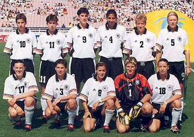 scoring in one out of three matches. Maren Meinert, Renate Lingor and Pia