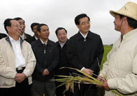 Hu, also general secretary of the Chinese Communist Party Central Committee, visited central China's Hunan Province starting Oct. 1. Deepening reforms can bring continuous impetus for development,pushing forward economic and social progress more rapidly and comprehensively, Hu said. The president also showed great attention to local farmers' lives as well as agricultural and rural development. He said that local authorities should devote more energy to promote strategic readjustment in agricultural structures, carry forward various reforms in villages, increase investment in rural infrastructures and open new channels to settle surplus rural labor. During Hu's inspection in Hunan, he visited the national hybridrice research center headed by Yuan Longping, a celebrated professor dubbed the "father of hybrid rice" and also an academician of the Chinese Academy of Sciences. Praising experts' contributions to the research over the new variety of super hybrid rice, Hu said that grain was key to the country's economic security and the people's survival. Hu urged the central areas to further protect farmland and enhance the capacity of agricultural production, especially the grain output. "We should rely on scientific technologies to increase the grain yield. Moreover, our policies should be improved to arouse farmers' production initiative, which will help ensure food security," Hu added. Hu learned about local people's living standards and the service level of civil servants by visiting farms, workshops, community stores and employment service centers. He said that government officials at various levels should base their work on the realization, protection and development of the masses' fundamental interests. They should exert themselves in strenuous work and crack down on any corruption, money worship, hedonism and selfishness.