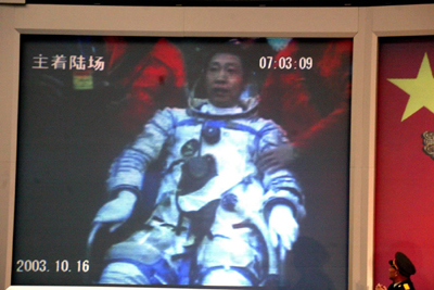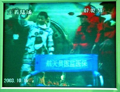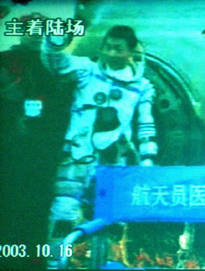 return capsule of the Shenzhou V spaceship Thursday morning, October 16. Yang spent