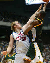 Unlike Thursday's game, both teams started quickly. Lewis scored 15 points, and the Sonics grabbed a 35-30 lead after the first quarter.