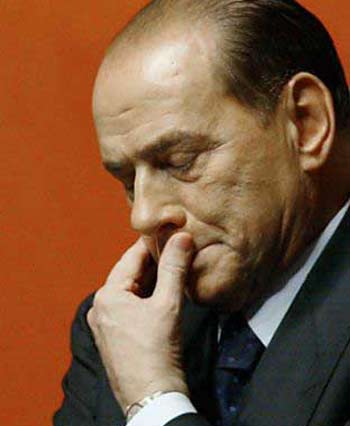 Berlusconi pauses during a debate at the Senate, Italy's upper house of