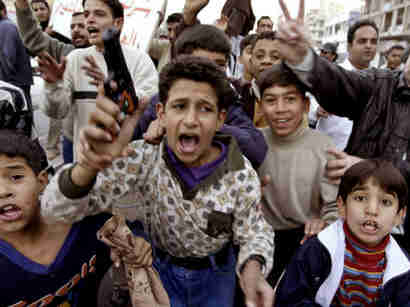 | | |  | | | Iraqi children celebrate in Baghdad December 14, 2003 after the capture of ousted Iraqi leader Saddam Hussein . U.S. troops captured Saddam Hussein near his home town of Tikrit, announced U.S. administrator in Iraq Paul Bremer on Sunday, in a major coup for Washington's beleaguered occupation force in Iraq. [Reuters] | | | | | | | | | |